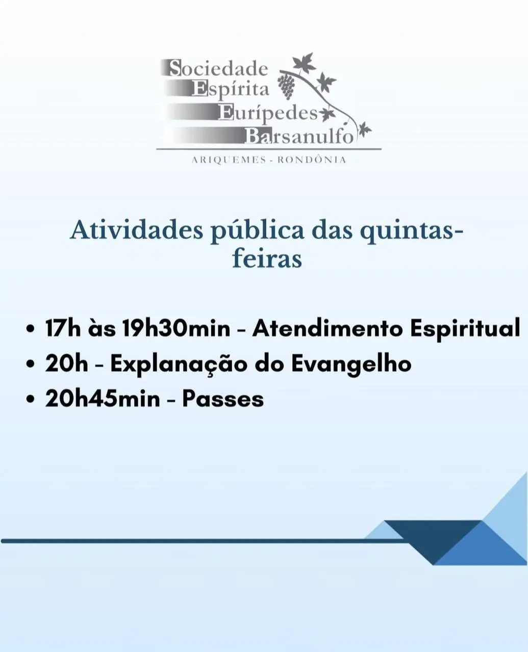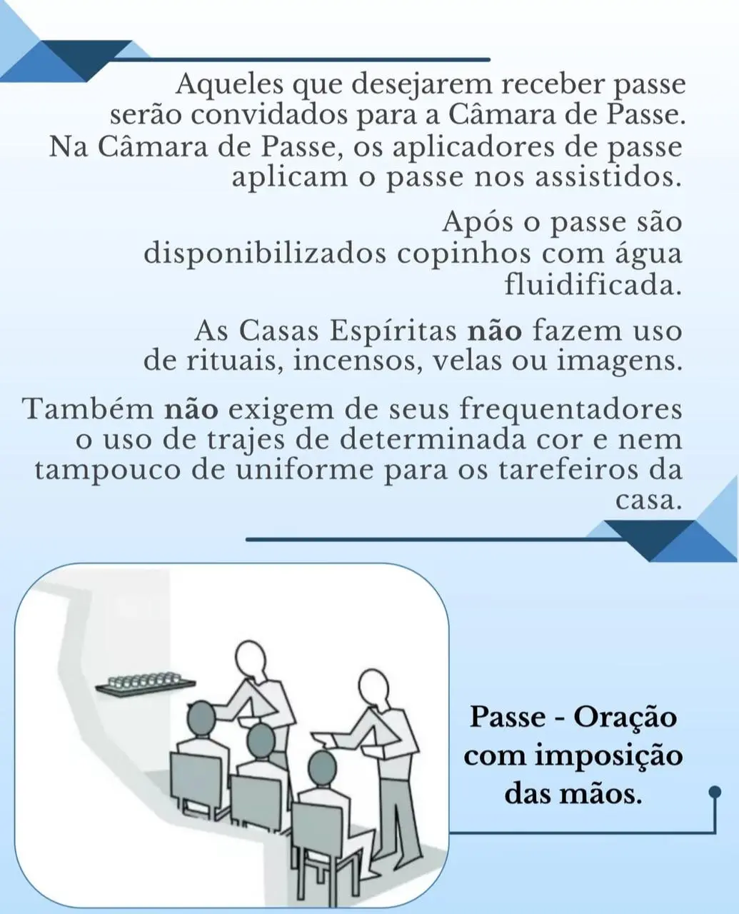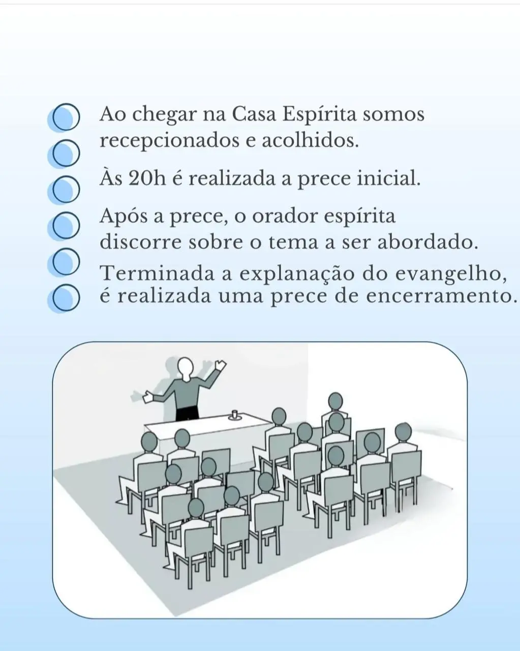 Após o Evangelho o público será convidado à sala de passe e ato contínuo recebem a água fluidificada.